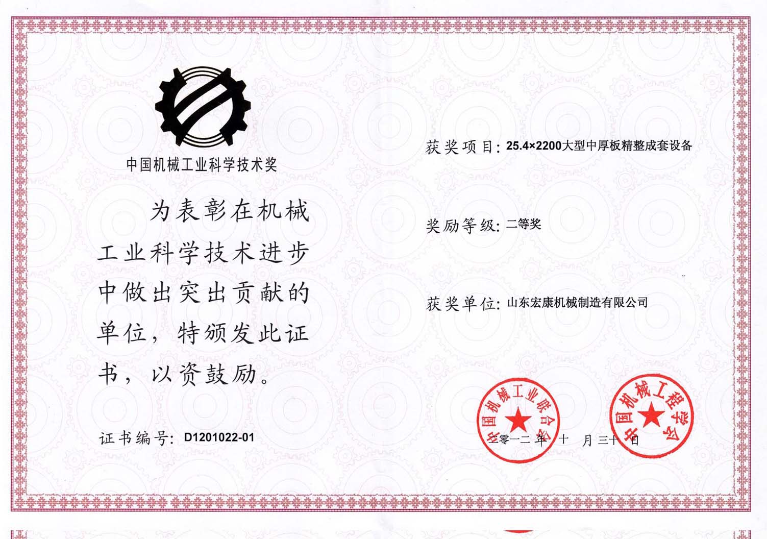 机械工业科学技术进步贡献奖