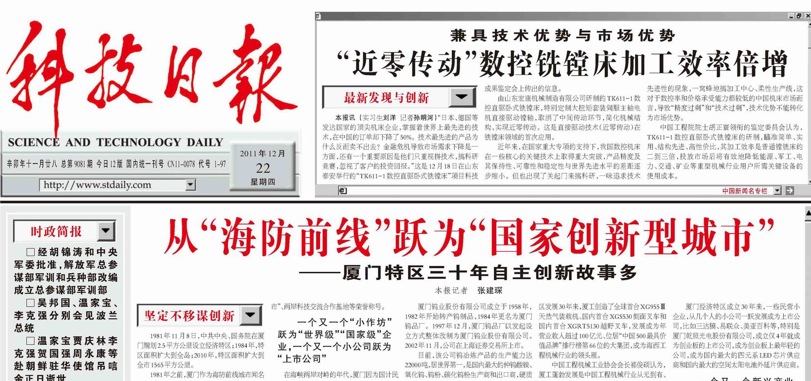 “近零传动”数控铣镗床加工效率倍增《科技日报》 2011年12月22日总第9081期