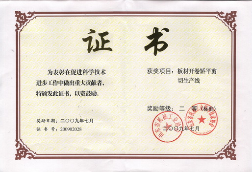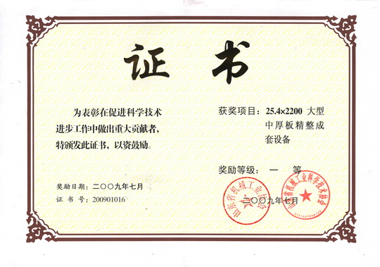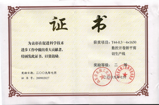 9月28日,全省机械工业科技创新与信息化工作会议在济南召开,来自全省机械行业的近100名代表参加了会议。公司副总经理朱洪臣代表公司参加会议,并上台领取了获奖证书。我公司一次申报的四项技术成果全部获奖,其中,“25.4×2200大型中厚板精整成套设备”获一等奖;“T44-0.3~4×1650米乐电竞官方网站(中国)有限公司官网”和“板材开卷矫平剪切生产线”(标准)获二等奖;“TX160型落地镗铣床”获三等奖,开创了省机械工业协会(原省机械厅、省机械工业办公室)和省机械工业科学技术协会的科技进步奖评审历史的先河。